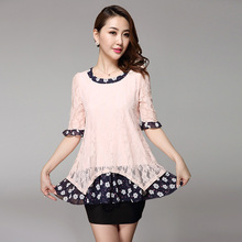 胖妹妹夏装新款女装2017蕾丝打底衫女中长款百搭荷叶边胖mm上衣薄