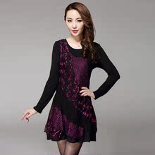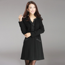 2017新款中长款加大码女装胖mm春秋冬装长袖加厚连衣裙胖妹妹显瘦