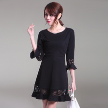 2017春装新款欧货女装欧美连衣裙五分袖欧洲站鱼尾荷叶边显瘦潮