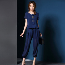 雪纺大码套装女胖mm2017新款潮胖妹妹夏装两件套九分裤200斤女装