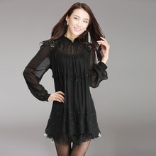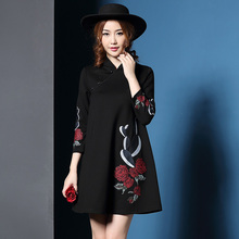 2017新款刺绣加肥加大码女装胖mm春秋装旗袍领连衣裙长袖胖妹妹潮