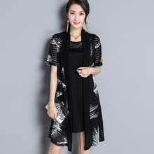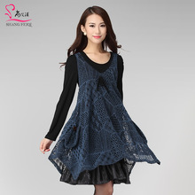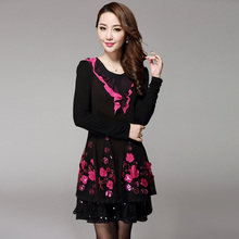 2017新款刺绣加肥加大码女装胖mm春秋装连衣裙中长款长袖两件套潮