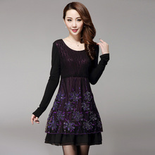 2017款加肥加大码女装胖mm春秋装蕾丝胖妹妹连衣裙长袖200斤显瘦