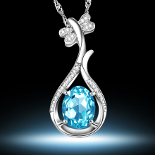 6克拉托帕石水晶项链吊坠女短款锁骨链925银海洋之心形首饰品