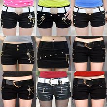秋冬包臀性感pu拼皮短裤女士低腰紧身超短裤夜店修身显瘦百搭靴裤