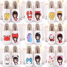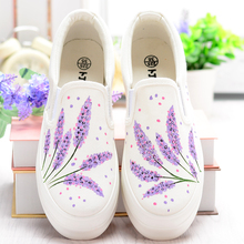 卜丁夏季手绘帆布鞋乐福鞋 韩版女鞋厚底松糕鞋板鞋潮单鞋学生鞋