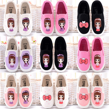 春季儿童帆布鞋女童低帮套脚布鞋手绘卡通公主鞋大童板鞋休闲球