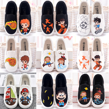 2017新款手绘儿童帆布鞋童鞋低帮透气套脚懒人鞋休闲单鞋男童布鞋