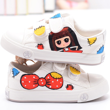 春季儿童帆布鞋女童鞋低帮单鞋布鞋公主鞋大小白鞋休闲板鞋手绘