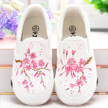 新款儿童手绘帆布鞋女童布鞋休闲鞋板鞋低帮单鞋一脚蹬学生鞋公主