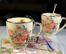 典藏版!韩国进口QueenRose皇家玫瑰陶瓷咖啡杯 镀金边水杯大中号