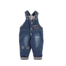 宝宝牛仔背带裤加厚加绒婴幼儿纯棉保暖长裤男女小童秋冬棉裤开档