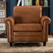 新古典欧式美式皮质沙发椅 创意个性客厅咖啡馆复古做旧 单人沙发