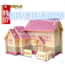 正品四联 木质拼图模型 3D立体拼图 西式小屋 益智玩具 DIY木制