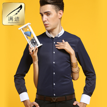 满速【插色白领】 新品 商务长袖衬衫韩版修身免烫衬衣男装潮