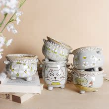 陶瓷花盆多肉植物花盆卡通花盆花盆带脚花盆手工手绘创意花盆包邮