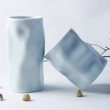 景德镇绝美影青釉创意褶皱陶瓷咖啡杯创意马克水杯子情侣礼物