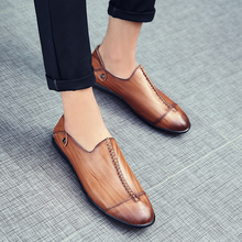 蒂诺克春季男休闲皮鞋男韩版青年真皮透气休闲鞋英伦百搭懒人鞋男