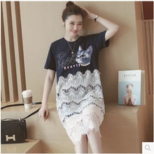 孕妇裙子夏连衣裙韩版时尚休闲短袖t恤拼接蕾丝中长款潮怀孕衣服