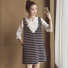 2017春装新款孕妇装韩版大码中袖衬衫孕妇条纹背心连衣裙两件套