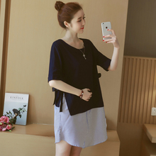 春夏装孕妇连衣裙2017夏季韩版新款条纹纯棉短袖假两件孕妇中长款
