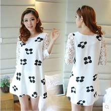 2017新款孕妇夏装韩版孕妇大码中长款上衣宽松孕妇蕾丝雪纺连衣裙
