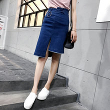 2017高腰开叉不规则毛边牛仔裙包臀半身中裙子潮个性女装夏季