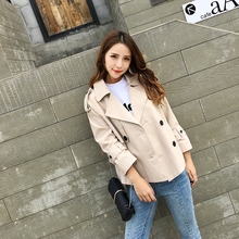 2017年春季法式优雅浅卡其米小A字版型气质8分袖短款风衣女