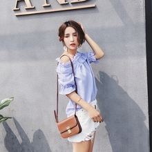 2017夏季新款荷叶边一字肩上衣女百搭宽松显瘦收腰衬衫学生潮
