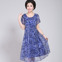 中老年女装夏装雪纺连衣裙中长款端庄大气婚礼妈妈装短袖中年裙子