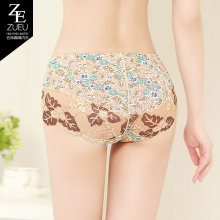 ZUEU/佐埃3条装 性感蕾丝透明大码女士内裤中高腰 弹性很好 包邮