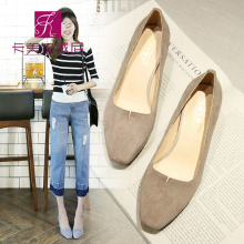 真皮磨砂深口单鞋女中跟粗跟尖头高跟鞋韩版百搭鞋子2017春季新款