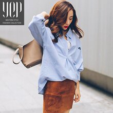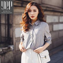 YEP2017春装韩版简约麂皮修身打底衬衣宽松长袖休闲衬衫上衣女
