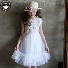 2017春夏新款女童礼服短裙中大童韩版金网立体花朵童装连衣裙子