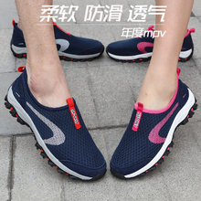 夏季男士跑步鞋女士透气轻便跑鞋懒人鞋防滑耐磨网面运动鞋老人鞋