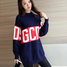 2016秋冬装新款圆领明星中长宽松大字母针织衫套头同款毛衣女打底