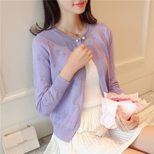 2017春夏新品纯色修身圆领针织衫开衫珍珠扣薄款百搭外套披肩女装