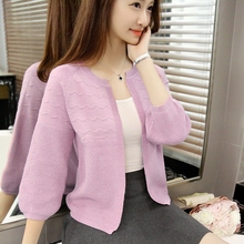 针织衫女开衫薄外套2017春装新款韩版修身短款毛衣长袖外搭小披肩