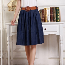 2017春季新款牛仔中裙高腰大码女装半身长裙牛仔中长款百褶短裙子