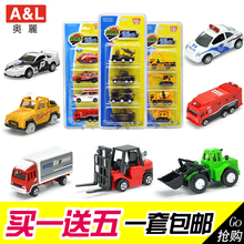 正版奥丽1:64迷你合金车模型玩具警车工程车消防车挖土巴士耐摔