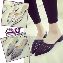 2017女夏季欧美潮流时尚平底透气洞洞鞋平跟韩版室外凉拖鞋尖头鞋