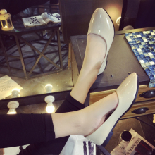 2017春秋矮跟套脚单鞋女坡跟白色瓢鞋小圆头漆皮低跟船鞋浅口鞋子