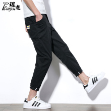 夏季男士九分裤大码休闲裤韩版修身小脚裤潮流男装纯棉哈伦男裤子