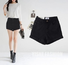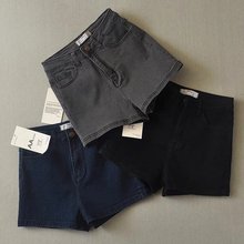 2016欧美复古高腰侧拉链牛仔短裤女夏大码修身显瘦包臀弹力热裤
