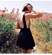 欧美性感露背裙无袖高腰连衣裙露肩A字大摆短裙沙滩裙 夏