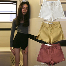 2016夏季新欧美风AC FOR AG复古高腰修身弹力牛仔短裤阔腿裤 女
