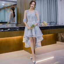 结婚礼服短款敬酒服新娘五分袖灰色聚会晚礼服前短后长晚会连衣裙
