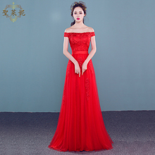 圣莱妮晚礼服2017春季新款新娘结婚一字肩夏韩版酒红色长款敬酒服