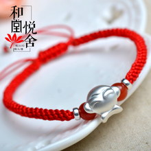 和堂悦舍2017鸡年S999银十二生肖苹果本命年红绳手链女友生日礼物