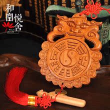 天然桃木山海镇八卦镜挂件风水摆件摆设家居用品装饰开光解煞安宅
